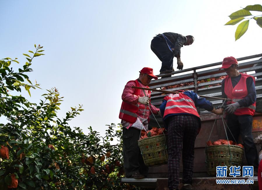 在四川省資陽市安岳縣石橋村,果農(nóng)將收獲的檸檬運送裝車(11月11日攝)。新華社記者 王曦 攝