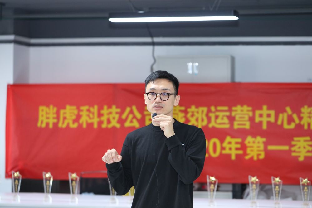 2020年4月,馬成在胖虎燕郊運營中心第一季度精英員工表彰大會上發(fā)言。(采訪對象供圖)