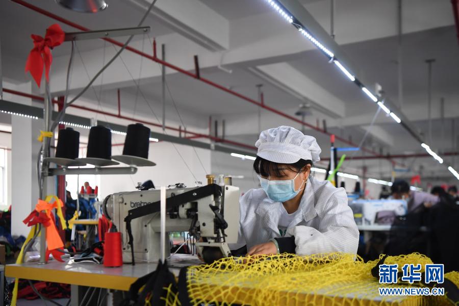 工人在湖南星海運(yùn)動(dòng)用品有限公司加工運(yùn)動(dòng)用網(wǎng)(10月28日攝)。新華社記者 薛宇舸 攝