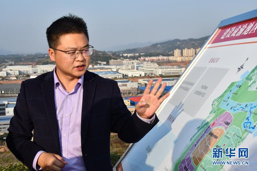 在四川省廣安市鄰水縣川渝合作高灘園區(qū),鄰水縣副縣長(zhǎng)趙冬介紹園區(qū)遠(yuǎn)景目標(biāo)(11月12日攝)。新華社記者 周相吉 攝