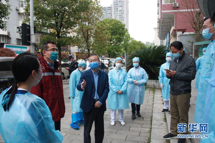 北京市豐臺區(qū)方莊社區(qū)衛(wèi)生服務中心主任吳浩(前左三)在武漢武昌區(qū)指導社區(qū)衛(wèi)生服務中心人員開展疫情防控(3月24日攝)。新華社發(fā)