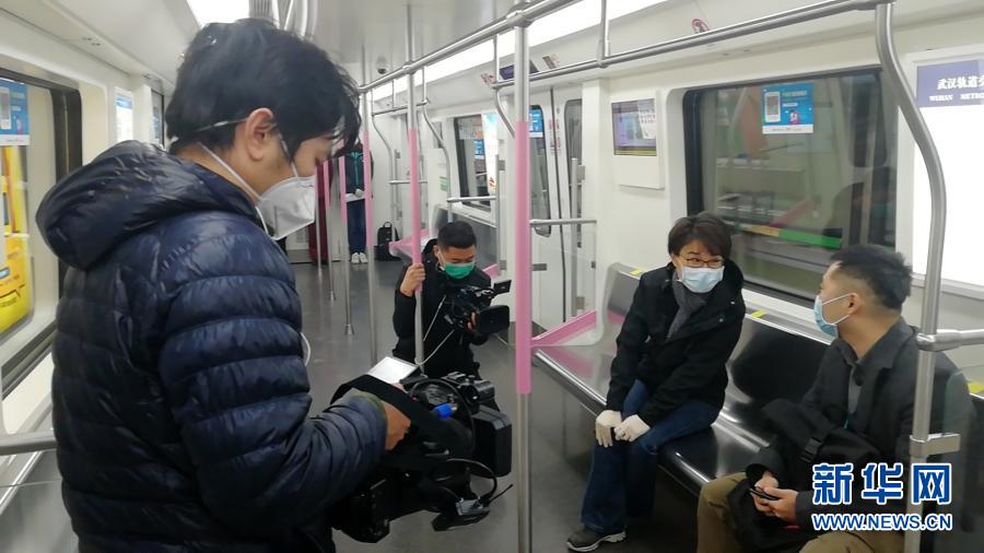 2020年3月,中央廣播電視總臺新聞中心記者董倩(右二)在武漢采訪報道地鐵重啟。新華社發(fā)