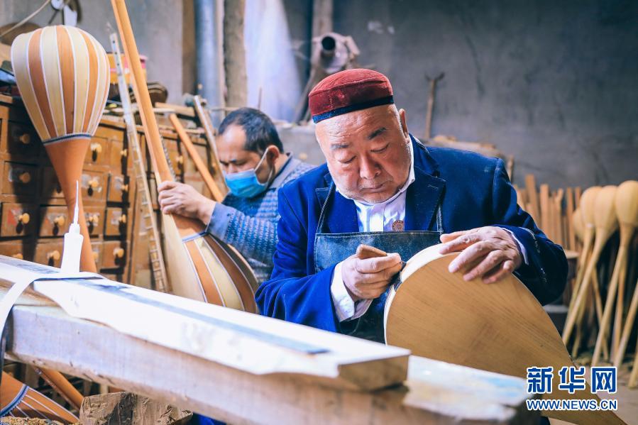 在村里,艾依提·依明與其他幾位“非遺”傳承人,不僅是技藝傳播者,也是致富帶頭人。因?yàn)榘捞帷ひ烂髦谱鞯臉?lè)器音節(jié)準(zhǔn)、音色美、造型漂亮,深受市場(chǎng)歡迎,附近很多村民慕名前來(lái)拜師學(xué)藝。他回憶,幾十年來(lái),他已帶出200多名徒弟,這些來(lái)自貧困家庭的農(nóng)村年輕人通過(guò)幾年學(xué)習(xí),基本都可以靠樂(lè)器制作、維修、演奏實(shí)現(xiàn)增收。