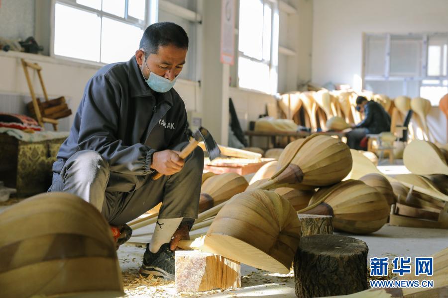 村民在加依村樂(lè)器制作農(nóng)民專業(yè)合作社制作民族樂(lè)器(11月12日攝)。新華社記者 張曼 攝