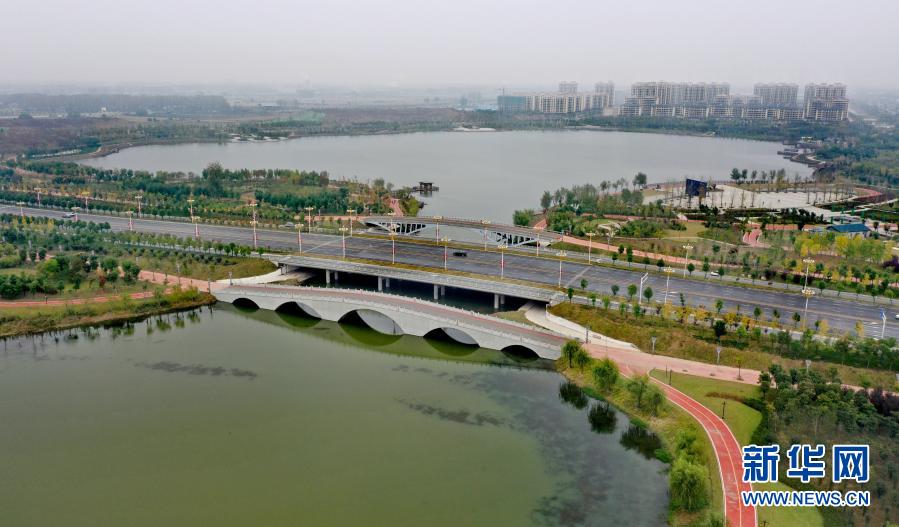 駐馬店市新蔡縣“五湖四帶”生態(tài)水系景觀(10月20日攝)。新華社發(fā)