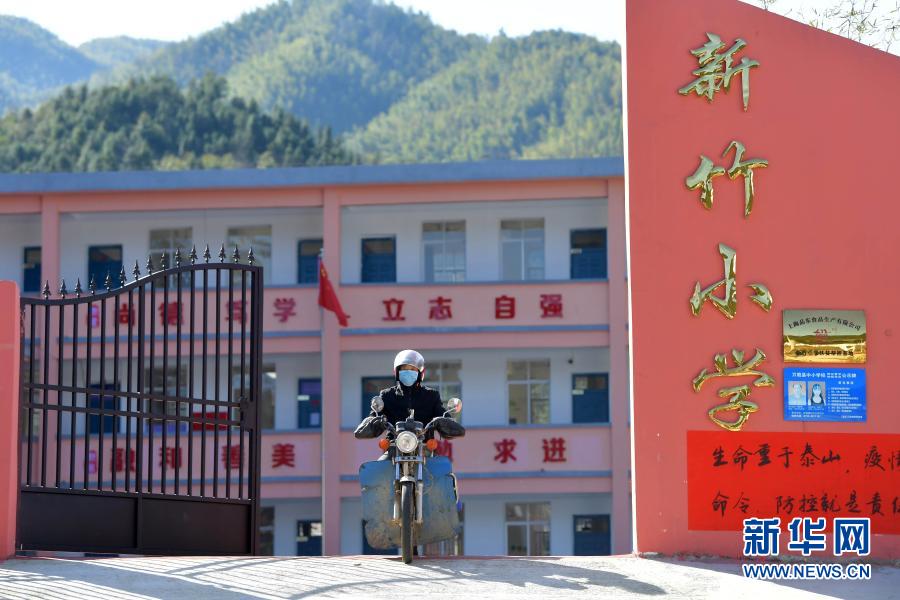 在江西省萬載縣高村鎮(zhèn)新竹村新竹小學(xué),校長羅長石帶著拷貝了當(dāng)日線上教育課程的U盤和新學(xué)期的書本,準備前往住在山里偏遠村組的幾位學(xué)生家里(2月17日攝)。新華社記者 彭昭之 攝