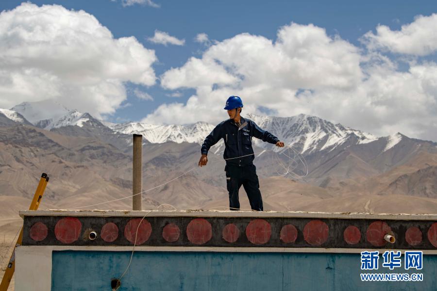 在新疆喀什地區(qū)塔什庫爾干塔吉克自治縣,工作人員為當(dāng)?shù)剞r(nóng)戶鋪設(shè)入戶光纖(6月10日攝)。目前,喀什地區(qū)已實(shí)現(xiàn)光纖入戶全覆蓋。新華社記者 胡虎虎 攝