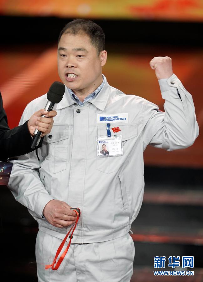 江蘇省無錫微研股份有限公司高級技師陳亮在“最美職工”發(fā)布儀式上(2019年4月21日攝)。新華社記者才揚(yáng)攝