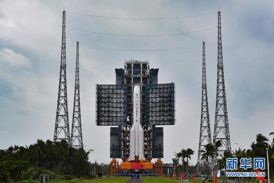 11月17日,長征五號遙五運(yùn)載火箭和嫦娥五號探測器在中國文昌航天發(fā)射場完成技術(shù)區(qū)總裝測試工作后,垂直轉(zhuǎn)運(yùn)至發(fā)射區(qū),計(jì)劃于11月下旬擇機(jī)實(shí)施發(fā)射。新華社記者 郭程 攝