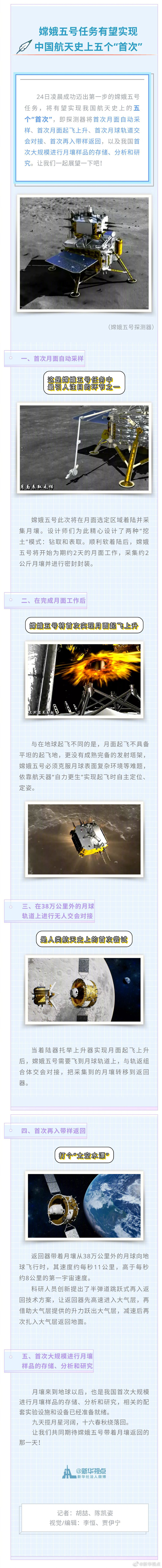 二是首次月面起飛上升,全靠嫦娥五號“自己完成”。