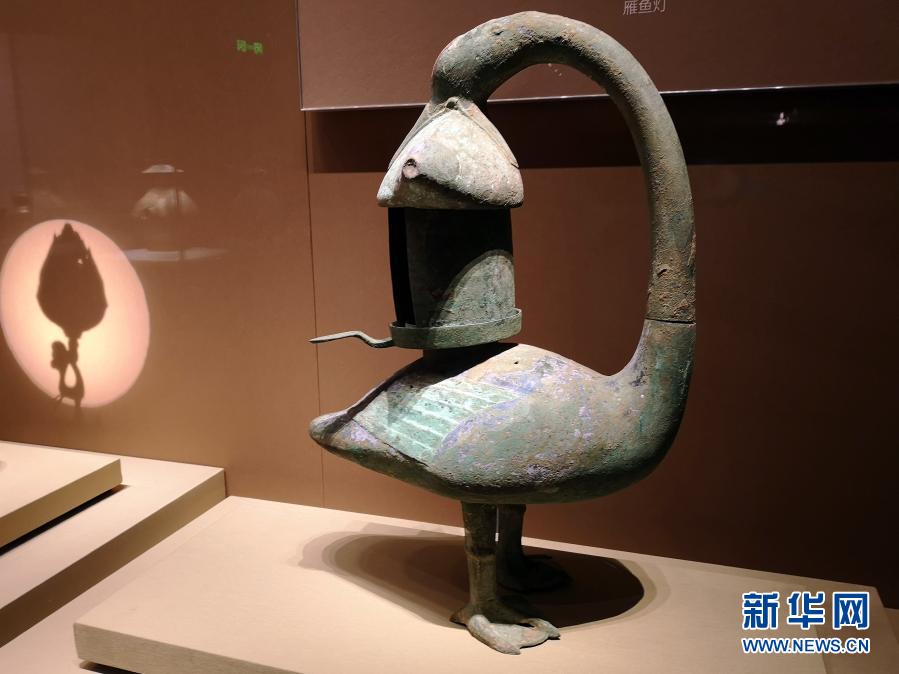 這是10月17日在山西青銅博物館拍攝的西漢彩繪青銅雁魚燈(手機照片)。新華社記者 孫亮全 攝