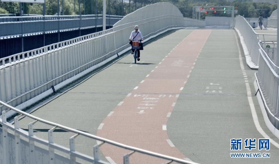 市民在“回天地區(qū)”一處自行車專用騎行道騎行(8月10日攝)。新華社記者 李欣 攝