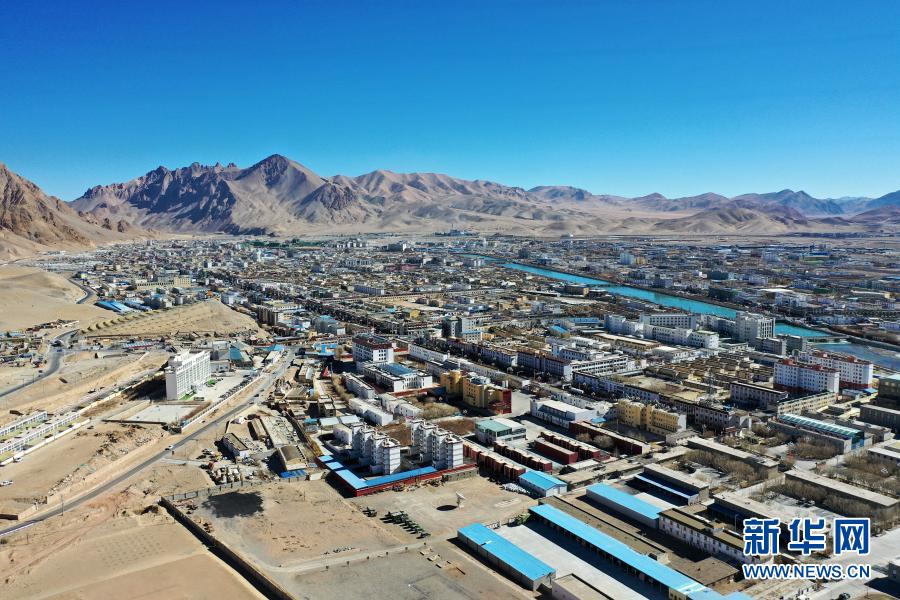 西藏阿里地區(qū)噶爾縣獅泉河鎮(zhèn)全景(12月2日攝,無人機(jī)照片)。新華社記者 詹彥 攝