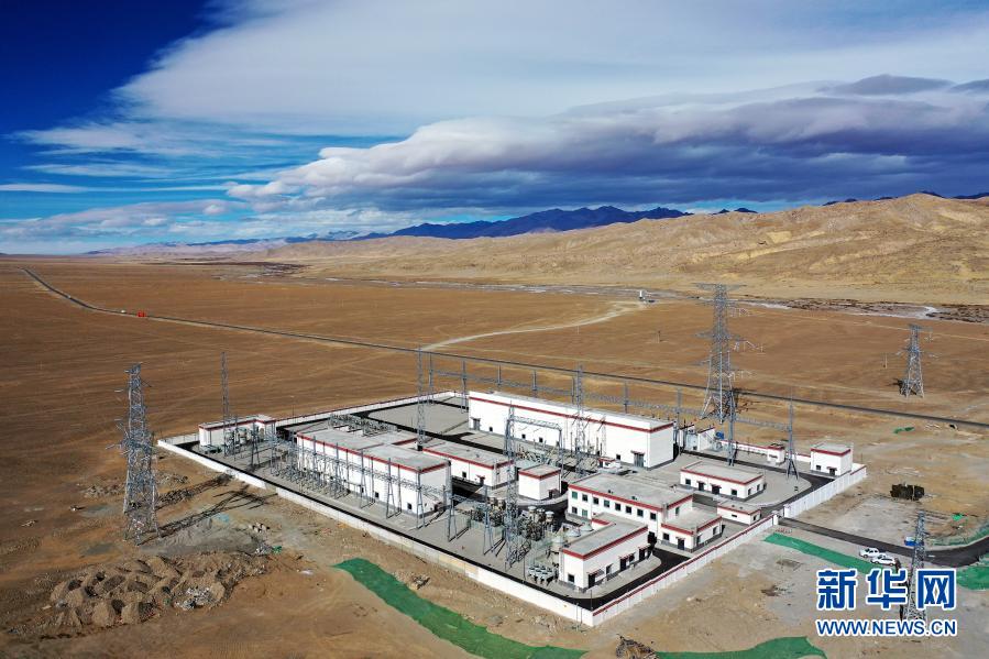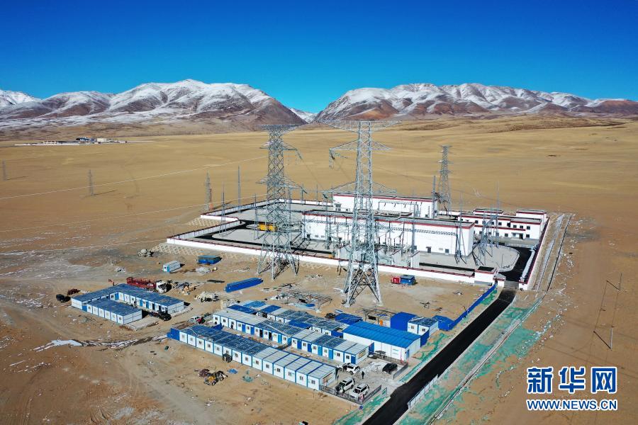 這是11月27日拍攝的西藏阿里與藏中電網(wǎng)聯(lián)網(wǎng)工程霍爾220千伏變電站(無人機(jī)照片)。新華社記者 詹彥 攝