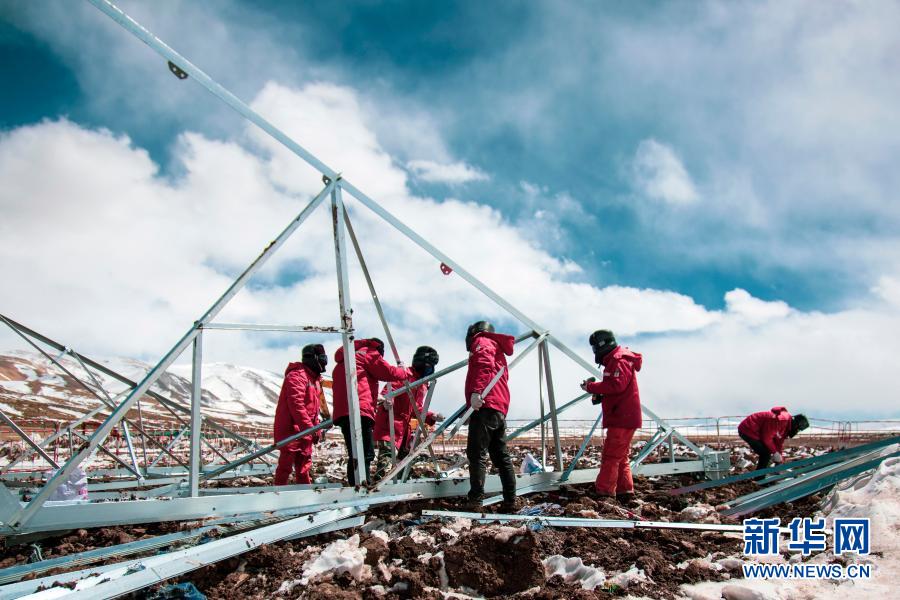“施工人員服用保護(hù)心臟的藥,背著氧氣瓶上到山頂,工作時(shí)心跳一直保持在每分鐘120次以上,一個小時(shí)就得輪班下來?!弊T晉說,山頂?shù)奶鞖庾兓脽o常,有時(shí)晴朗,強(qiáng)烈的紫外線照得大家滿臉?biāo)?;有時(shí)一場大雪,有的工人會瞬間雪盲。