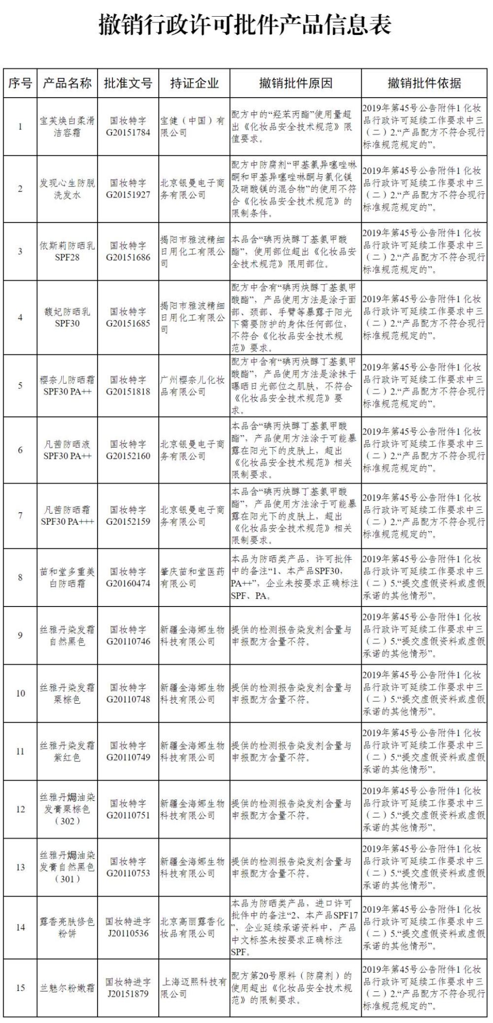 12月4日,國家藥品監(jiān)督管理局官網(wǎng)發(fā)布《國家藥監(jiān)局關(guān)于撤銷部分承諾制延續(xù)特殊用途化妝品行政許可批件的公告》如下: