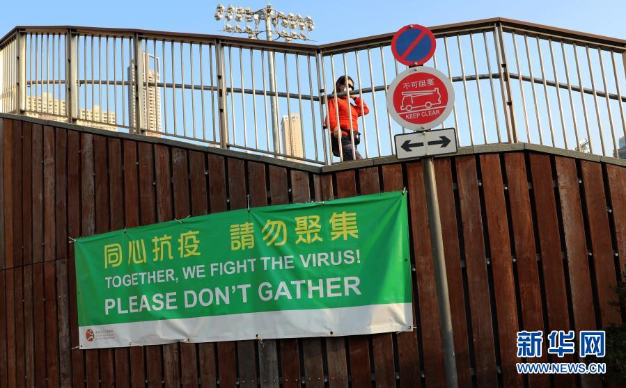 12月5日,香港市民從跑馬地的抗疫海報前走過。新華社記者 吳曉初 攝
