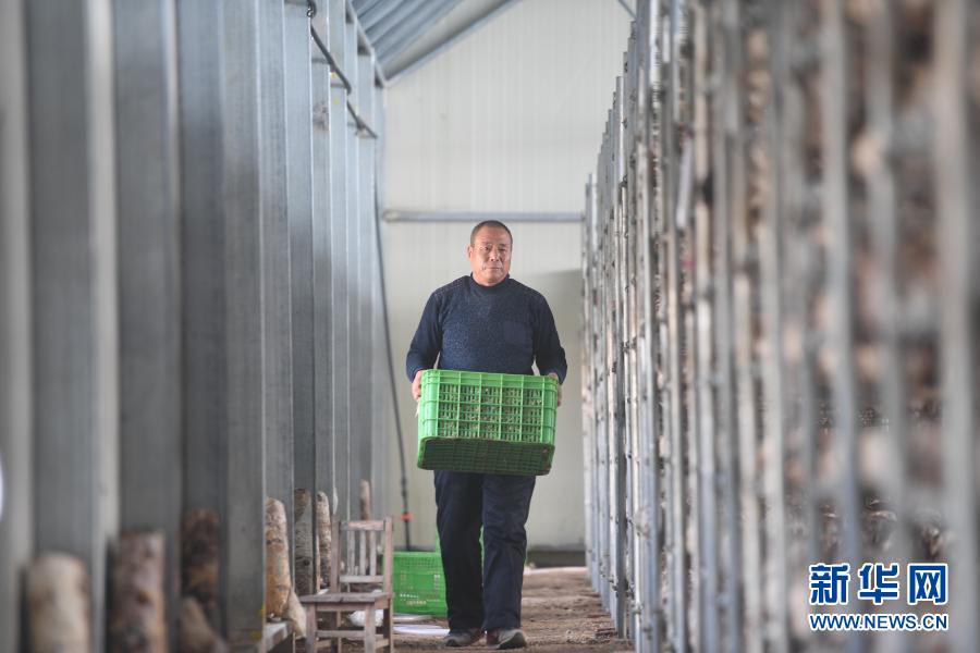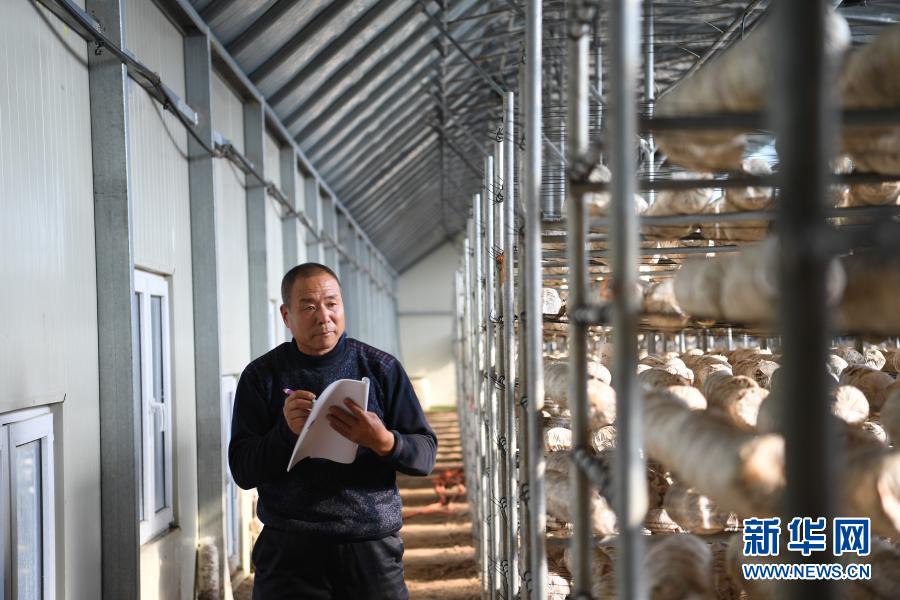 河北省阜平縣黃連峪村脫貧戶(hù)杜玉明在北果園食用菌基地勞作(11月25日攝)。新華社記者 朱旭東 攝