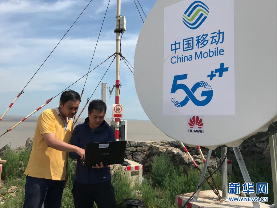 在江蘇省灌云縣開山島,中國移動工作人員測試5G信號(5月20日攝)。新華社發(fā)(茆平平 攝)