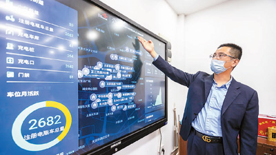 今年以來,上海市靜安區(qū)芷江西路街道對轄區(qū)內(nèi)的老舊小區(qū)非機動車車庫(棚)進行智能化改造,利用物聯(lián)網(wǎng)技術(shù)將車輛相關信息傳遞到小區(qū)物業(yè)公司管理平臺。圖為工作人員介紹非機動車庫管理系統(tǒng)。王 翔攝(新華社發(fā))