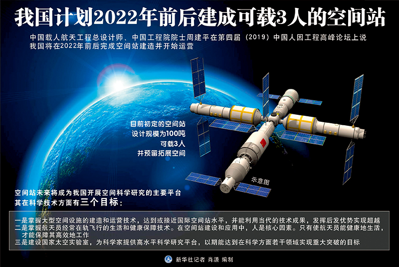 2022年前后,中國空間站將正式完成在軌建造任務。屆時,中國將在空間站上部署航天醫(yī)學、空間生命和生物、材料、微重力燃燒和流體、物理、天文等領域的高水平實驗設備,科學家可在空間站開展大量空間科學前沿領域的研究工作。