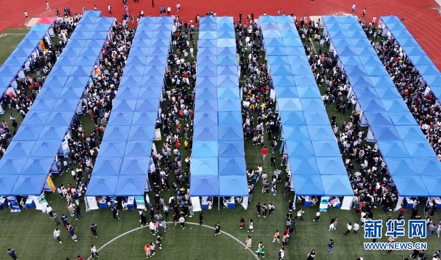 這是10月28日拍攝的上海市2021屆高校畢業(yè)生秋季校園招聘會現(xiàn)場(無人機照片)。新華社記者 劉穎 攝