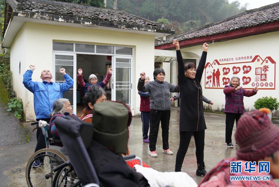 12月4日,在江西省撫州市黎川縣德勝鎮(zhèn)德勝村“幸福之家”養(yǎng)老服務站,工作人員帶領(lǐng)居民一起做操鍛煉身體。新華社記者 胡晨歡 攝