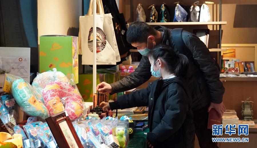 游客在河南博物院文創(chuàng)區(qū)選購(gòu)文創(chuàng)產(chǎn)品(12月8日攝)。新華社記者 袁月明 攝
