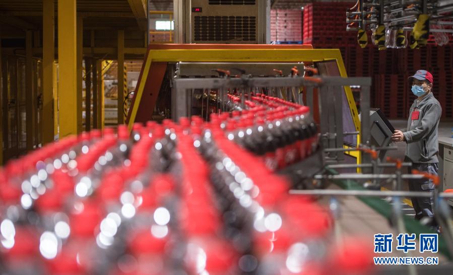 3月24日,工人在復工復產的湖北太古可口可樂飲料有限公司流水線上作業(yè)。新華社記者 肖藝九 攝