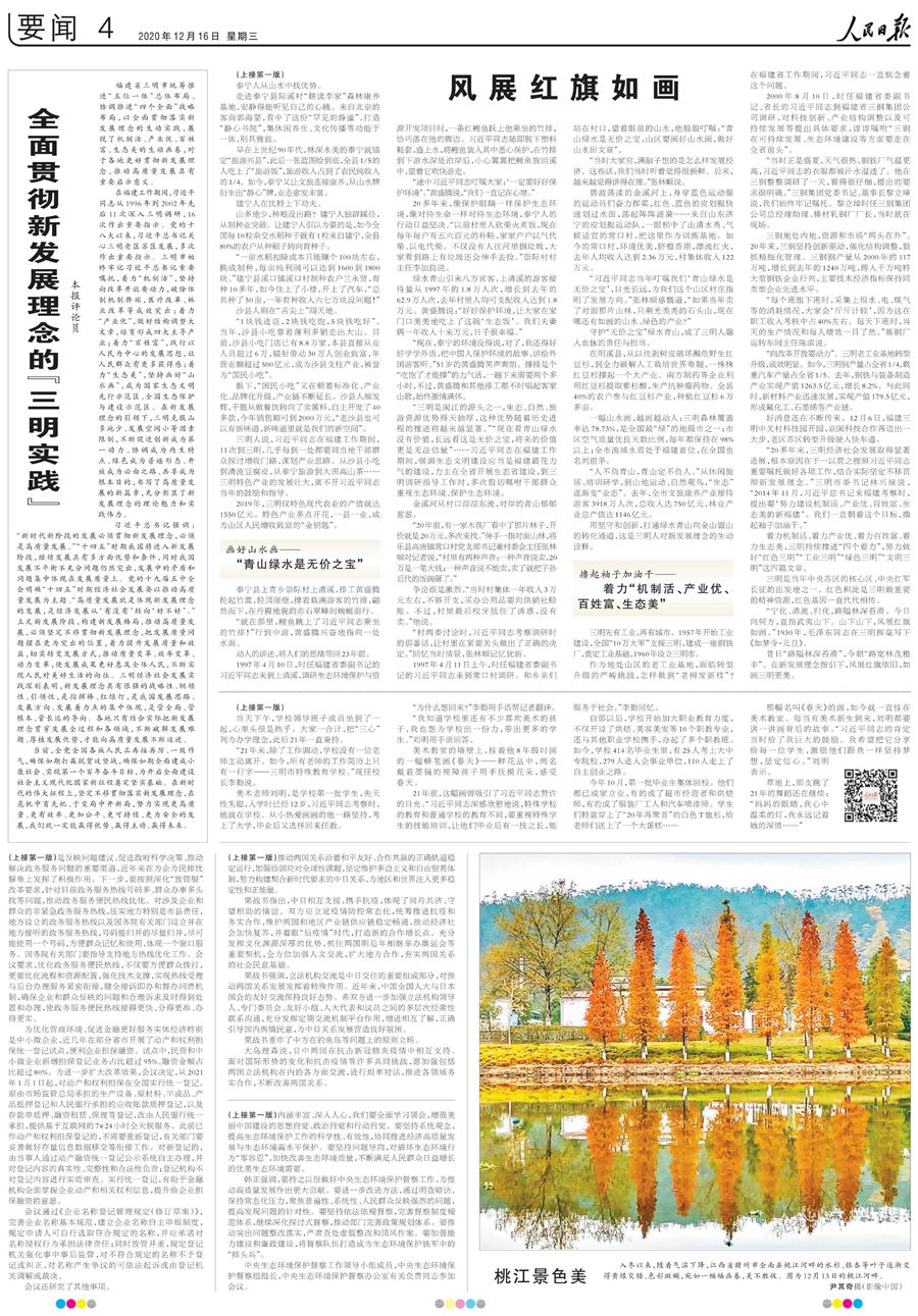習(xí)近平總書記的殷切牽掛,浸潤著這片“風(fēng)展紅旗如畫”的熱土。如今的三明人,牢記于心的是總書記的殷殷囑托,受益最大的是結(jié)合實際把新發(fā)展理念貫穿發(fā)展全過程和各領(lǐng)域。