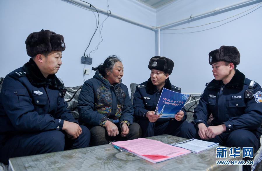 12月15日,內(nèi)蒙古烏蘭察布邊境管理支隊腦木更邊境派出所民警向當(dāng)?shù)啬撩裥麄鞣祷仄骰厥掌陂g的安全注意事項。新華社記者 連振 攝