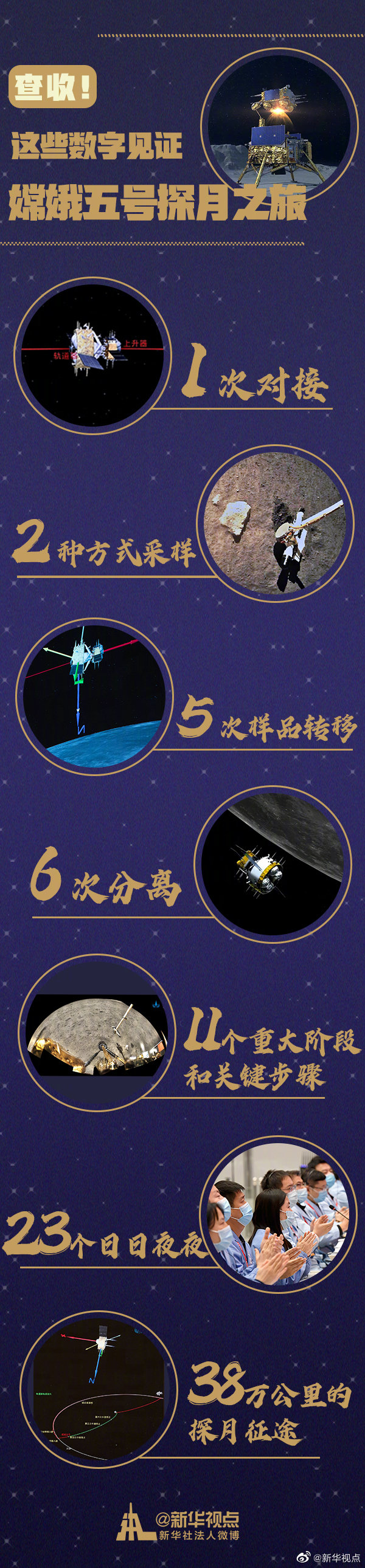 1、2、5、6、11、23、38……1次對(duì)接,2種方式采樣,5次樣品轉(zhuǎn)移,6次分離,11個(gè)重大階段和關(guān)鍵步驟,23個(gè)日日夜夜,38萬公里的探月征途!轉(zhuǎn)發(fā)!收藏!