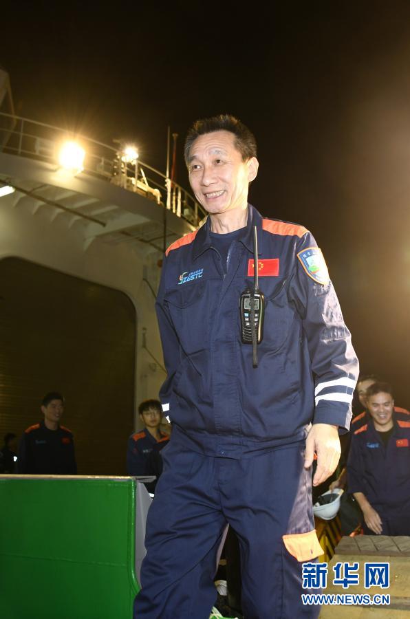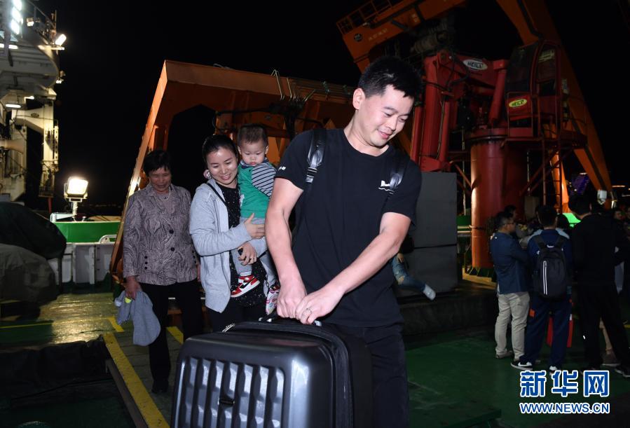 12月21日,“奮斗者”號(hào)海試保障母船“探索二號(hào)”靠泊三亞,科考隊(duì)員離船。新華社記者 趙穎全 攝