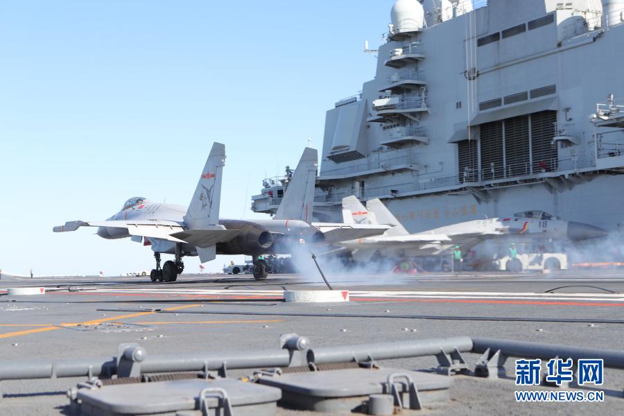 飛行學(xué)員駕駛殲-15艦載戰(zhàn)斗機(jī)在遼寧艦成功實(shí)施阻攔著艦(資料照片)。新華社發(fā)(楊皓 攝)