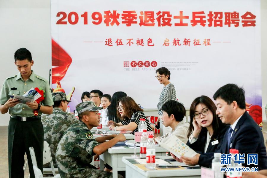 陸軍第72集團(tuán)軍某旅與地方政府合作舉行秋季退役士兵招聘會(huì)(2019年8月30日攝)。新華社發(fā)(莊林毅 攝)