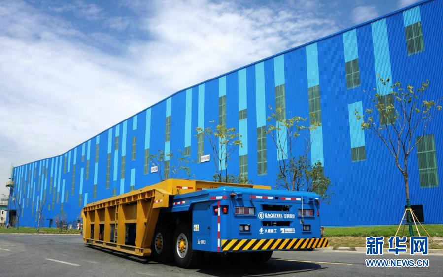 這是中國寶武寶鋼股份上海寶山基地的無人駕駛重載框架車及無人倉庫(資料照片)。新華社發(fā)(寶武集團供圖)
