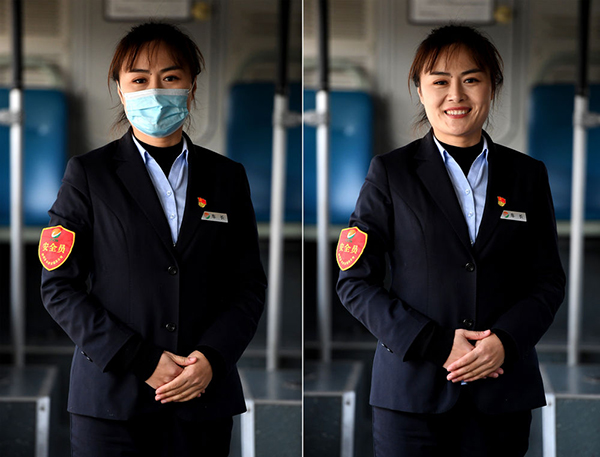 12月18日,黃菲在上崗前整理儀容。