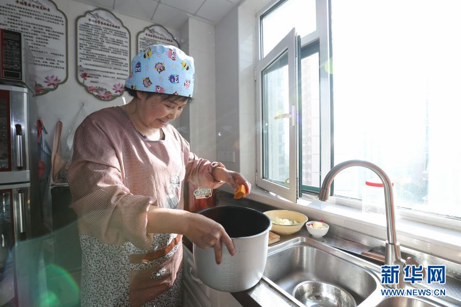 10月22日,西寧市城西區(qū)溫馨陽光托老所內(nèi),護(hù)理員張蓉霞在為老人們做飯。新華社記者 吳剛 攝