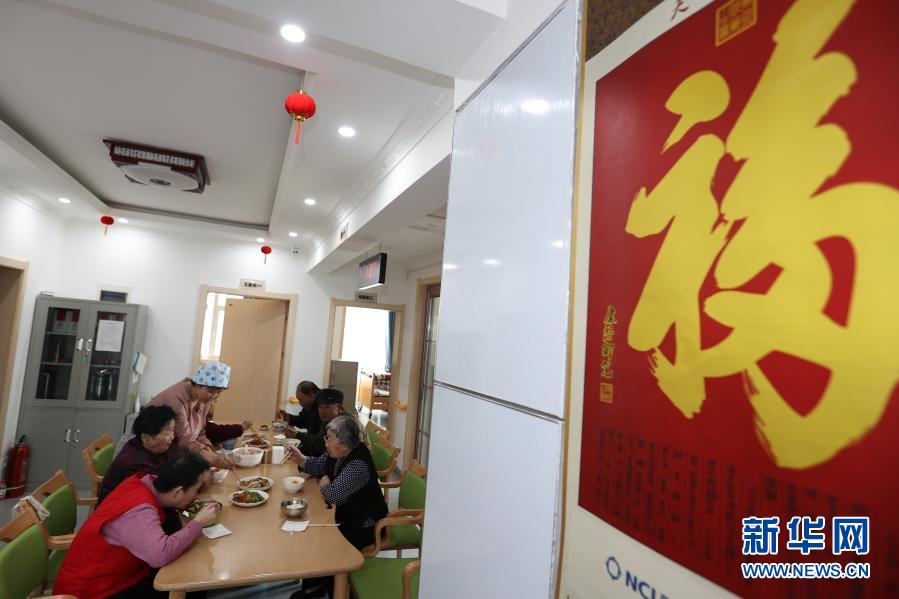10月22日,老人們?cè)谖鲗幨谐俏鲄^(qū)溫馨陽光托老所內(nèi)吃飯。新華社記者 吳剛 攝