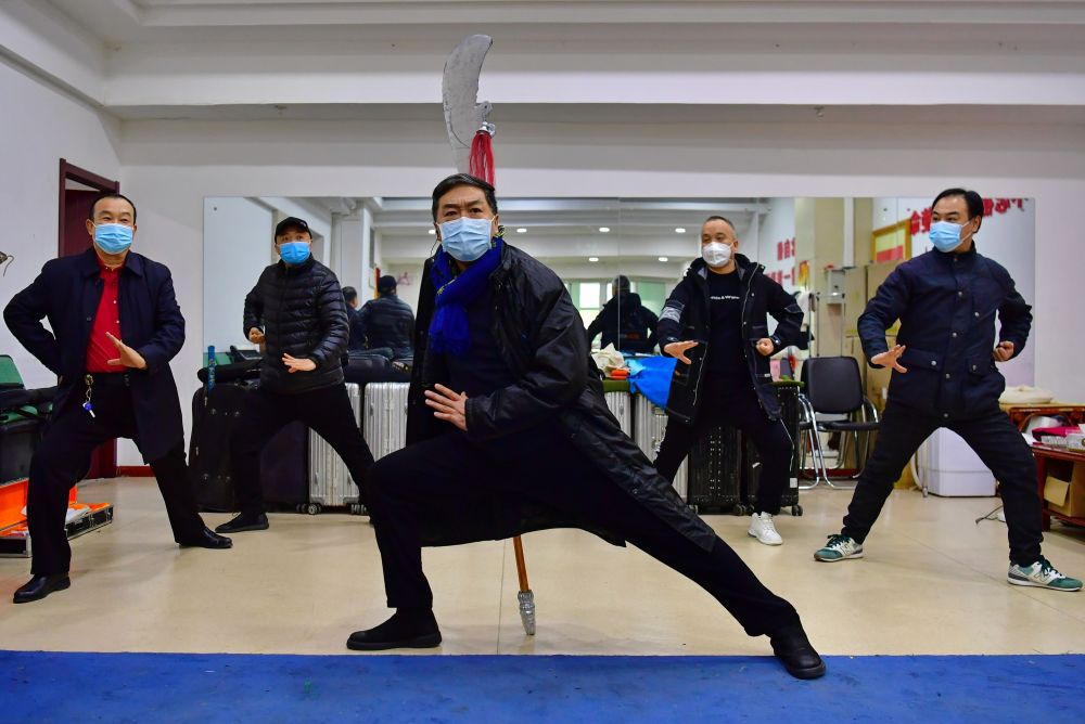 武凌云(中)在太原市晉劇藝術(shù)研究院排練晉劇(3月9日攝)。