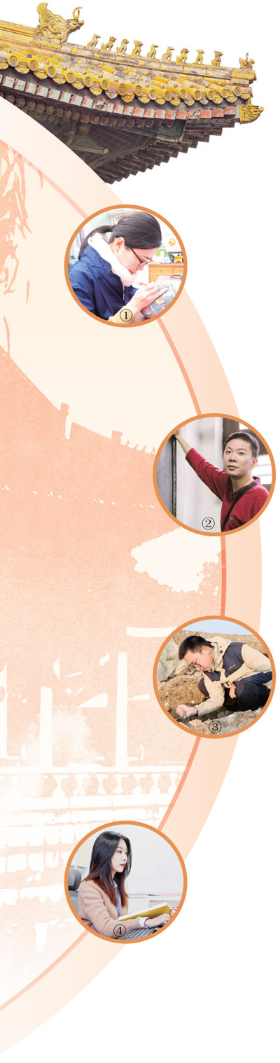 圖①:楊玉潔在修復(fù)瓷器。賴奐瑜攝 圖②:郁文韜在介紹碑文。尚 輝攝 圖③:吳偉參與明中都遺址考古發(fā)掘。寧 霄攝 圖④:康曉璐為制作APP查閱資料。朱 楷攝