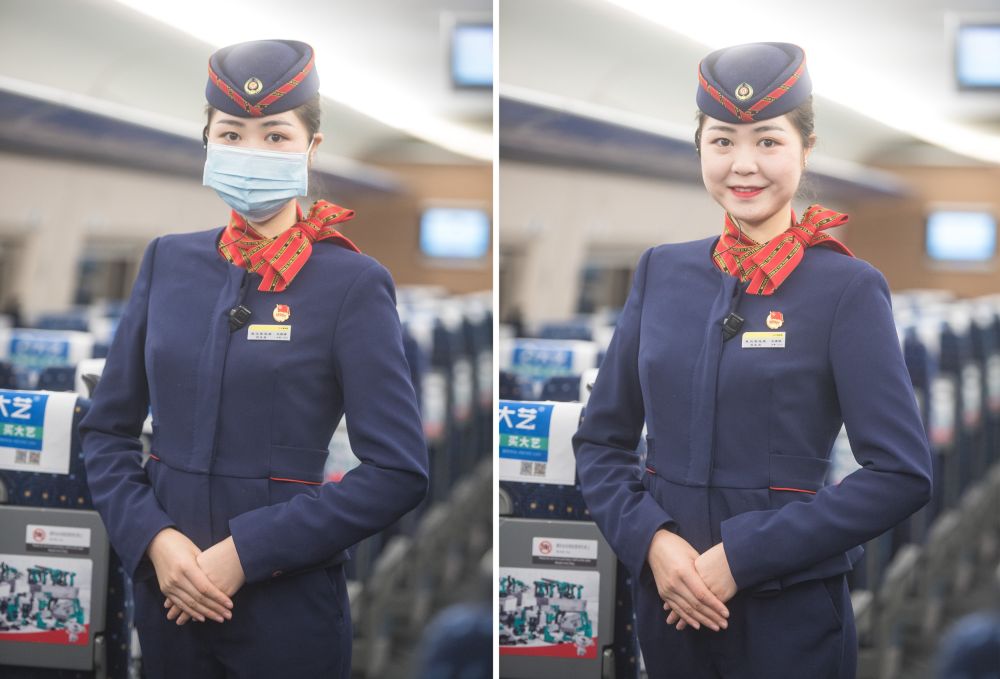 “現(xiàn)在說得最多的就是,請乘客戴好口罩、做好防護。經(jīng)歷了這么大一場疫情,感覺肩上的擔(dān)子更重了,做好服務(wù)的同時更要確保每一名乘客的安全?!闭驹谟浾呙媲暗闹袊F路武漢局集團有限公司武漢客運段高鐵乘務(wù)員艾婷婷20歲剛出頭,言語中顯露出超出同齡人的成熟。