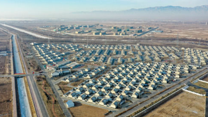 銀川市潤(rùn)豐村全景(無(wú)人機(jī)照片,12月31日攝)。新華社記者 馮開(kāi)華 攝