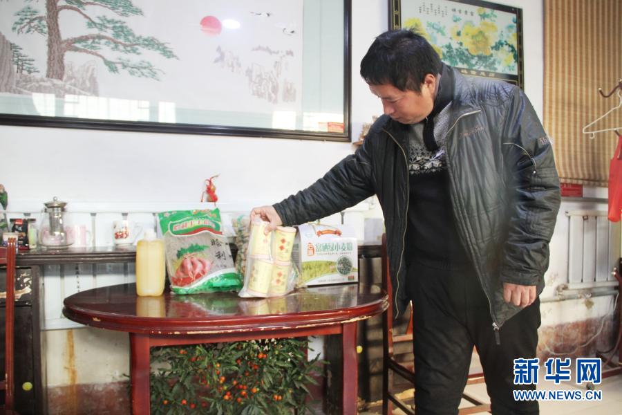 1月3日,在山東高唐縣清平鎮(zhèn)高寨村,于福強(qiáng)在整理家中等待出售的當(dāng)?shù)赝撂禺a(chǎn)。新華社記者 陳灝 攝