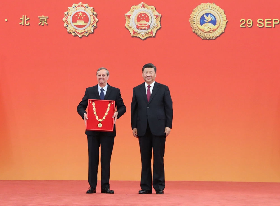 (圖為2019年9月29日,習(xí)近平向古共中央第一書記勞爾·卡斯特羅頒授“友誼勛章”,時(shí)任古巴駐華大使拉米雷斯代領(lǐng)。新華社記者 王曄 攝)