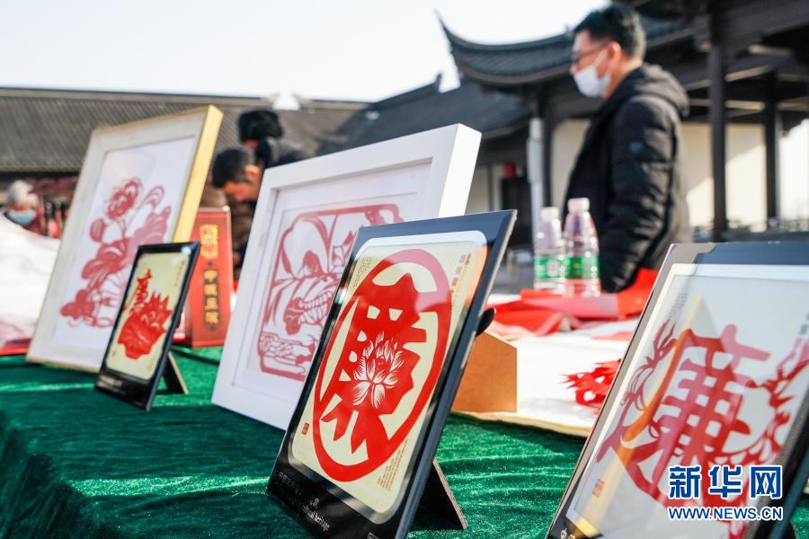 1月14日,江蘇省連云港市灌云縣紀(jì)委監(jiān)委在當(dāng)?shù)赝d鎮(zhèn)梅園文化廣場舉行廉政文化進(jìn)鄉(xiāng)村活動。這是在活動現(xiàn)場拍攝的廉政主題剪紙。 新華社記者 李博 攝