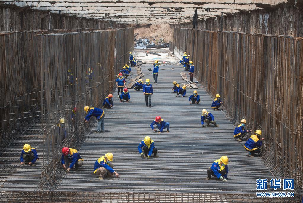 2020年4月30日,來自中鐵七局的建設者在武漢武九北綜合管廊工程施工現場作業(yè)。新華社記者 肖藝九 攝