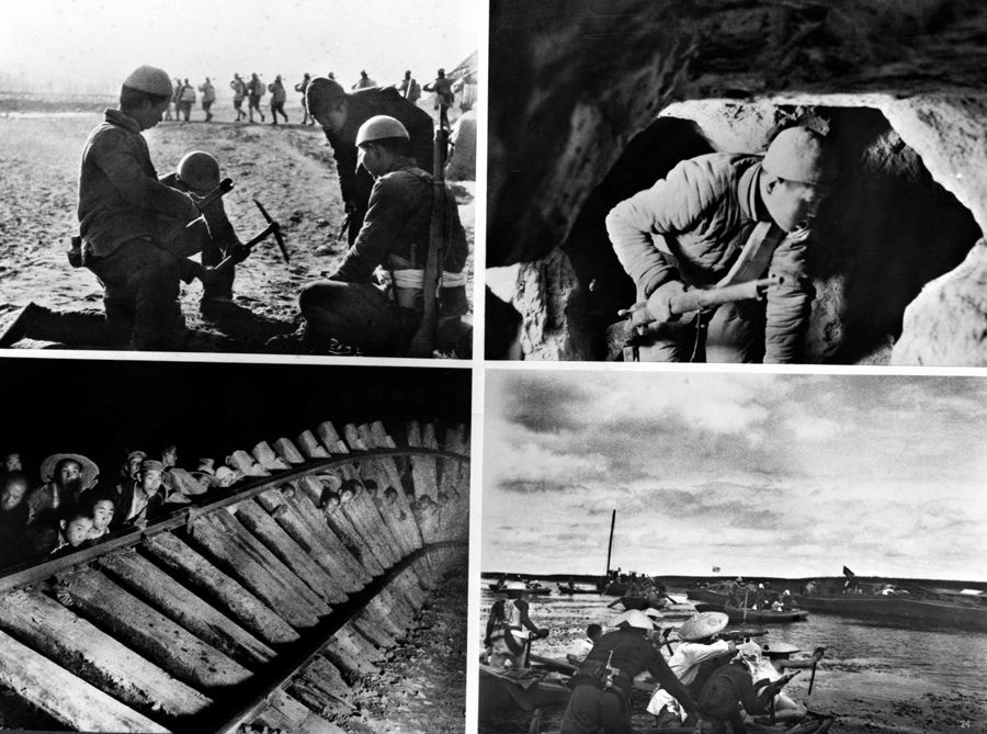 在反“掃蕩”、反“清鄉(xiāng)”的斗爭中,華北平原敵后軍民創(chuàng)造了很多有效的殲敵方法,發(fā)展了人民戰(zhàn)爭的戰(zhàn)略戰(zhàn)術(shù),狠狠打擊了日寇。上圖左:地雷戰(zhàn)。上圖右:地道戰(zhàn)。下圖左:破襲戰(zhàn)。下圖右:水上游擊戰(zhàn)。 新華社圖片