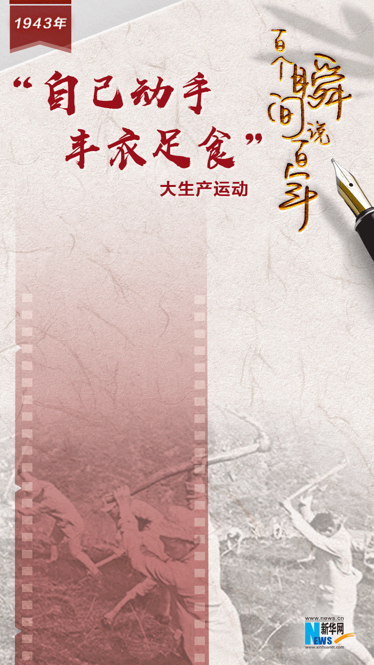1939年2月,當(dāng)困難剛剛露頭的時候,毛澤東就發(fā)出了“自己動手”的號召。1941年,黨中央再次強調(diào)必須走生產(chǎn)自救的道路。同年春,八路軍第三五九旅開進南泥灣實行軍墾屯田。戰(zhàn)士們用歌聲喚醒沉睡的土地,用汗水澆出萬頃良田,使昔日荒涼的南泥灣變成了“糧食堆滿倉,麥田翻金浪,豬牛羊肥壯”的“陜北的好江南”。到1944年,第三五九旅除吃用全部自給外,達到了“耕一余一”(即耕種一年莊稼,除消耗外,可剩余一年吃的糧食),成為全軍大生產(chǎn)運動的模范。一曲動人的《南泥灣》流傳至今,久唱不衰。