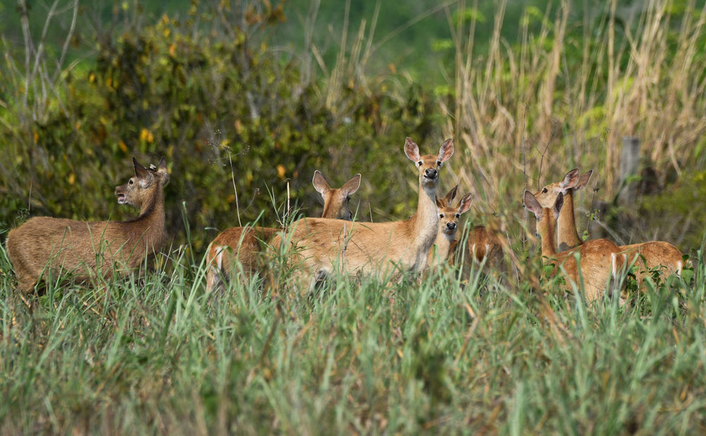 在海南邦溪坡鹿自然保護(hù)區(qū),坡鹿在保護(hù)區(qū)內(nèi)駐足休息。(新華社記者楊冠宇2020年4月3日攝)